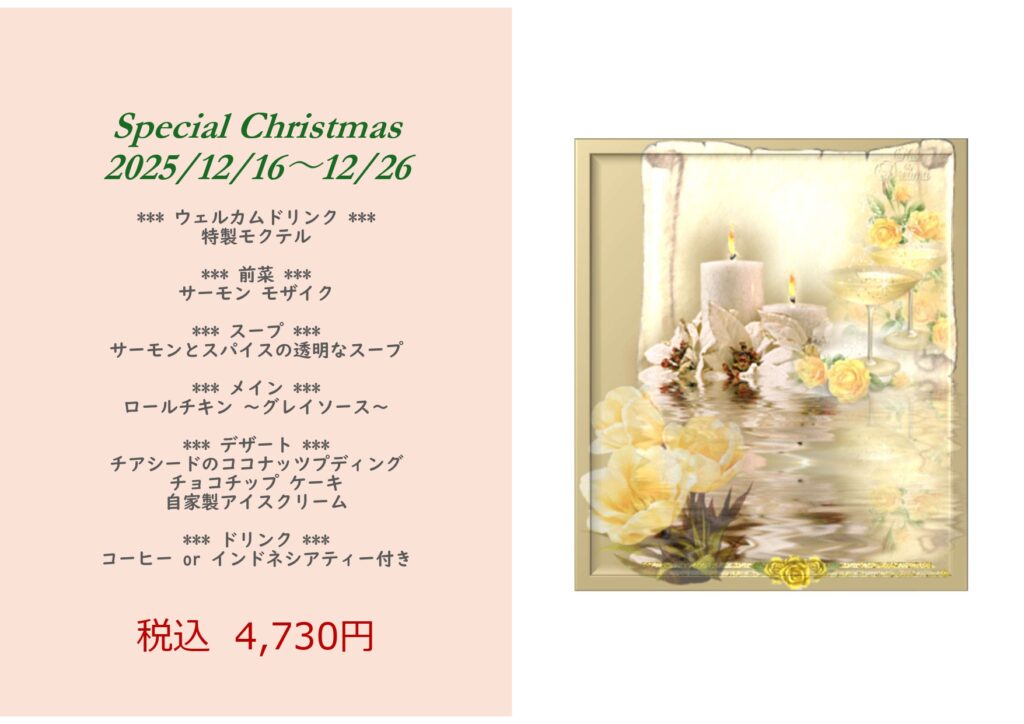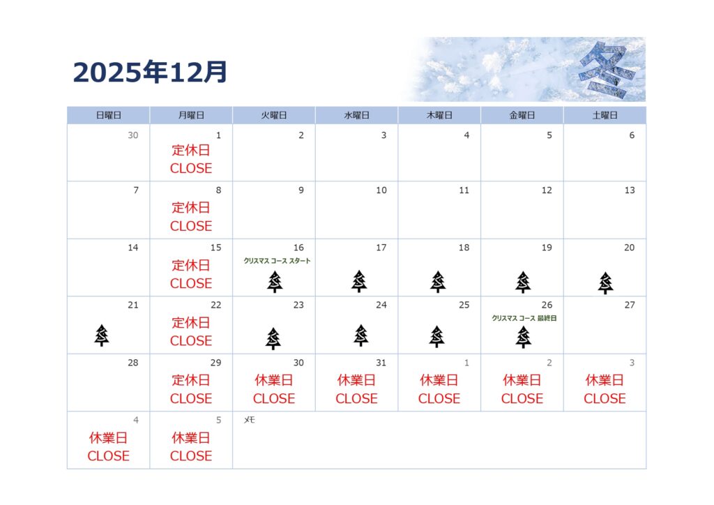 クリスマスコース 開催期間2025/12/16~12/26まで。予約受付中です。